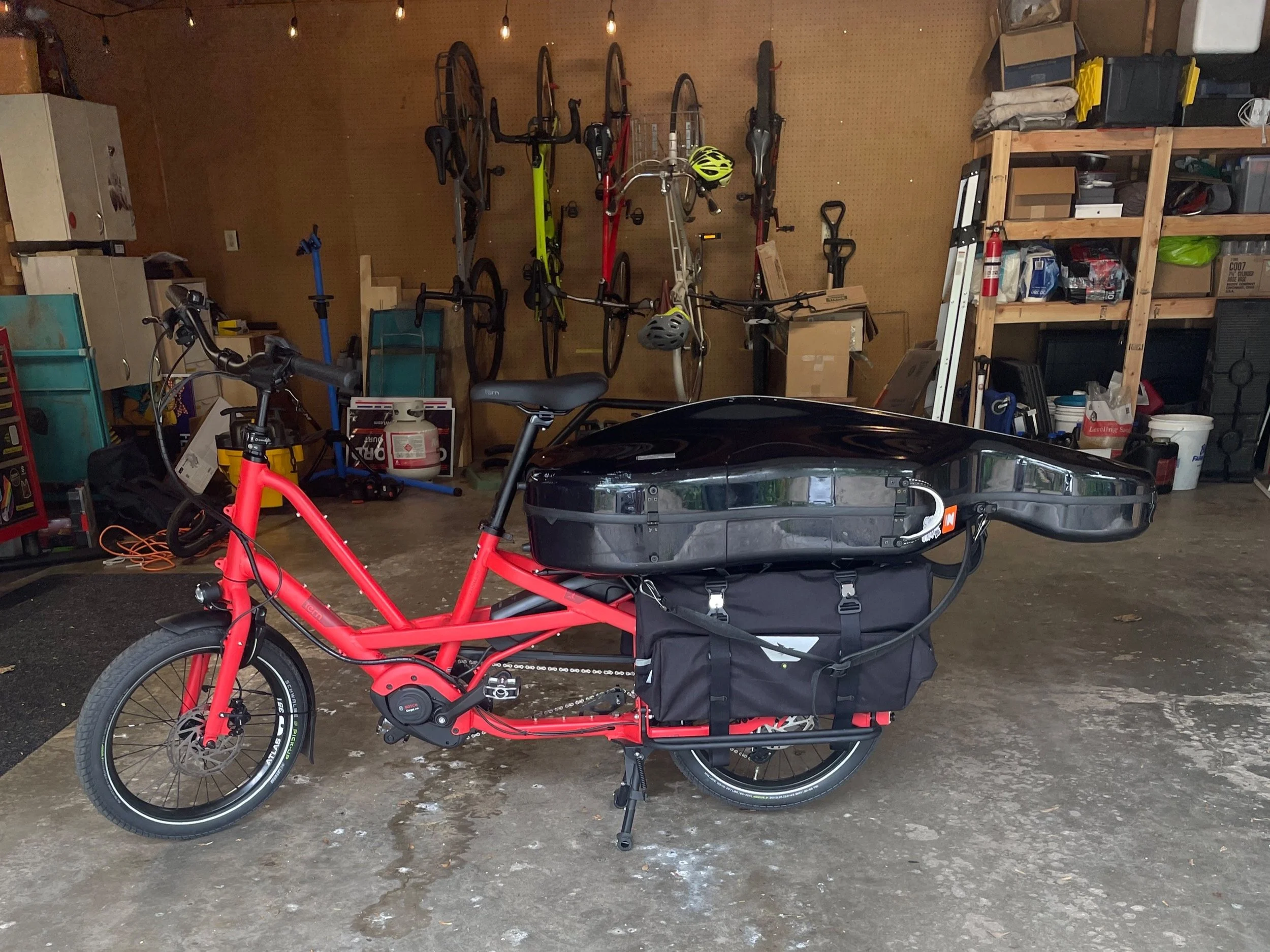 The main issue that has plagued me thus far is my front brake, which has now been replaced twice. The first brake failed due to oil contamination, but the source wasn’t immediately clear. For those who don’t know this, once the brake pads and rotor get oil on them, they are finished. Since the leak couldn’t be located, the whole brake was replaced under warranty. This happened within about 50 miles of taking ownership. The second failure happened around 600 miles and was similar, but the glazing on the rotor was far more obvious. While we also don’t know where the leak was coming from on this brake, I suspect the cause of these leaks is some kind of over-heating either from being ridden too aggressively or from carrying more weight than the brake can reasonably handle. I don’t know that either of these was the cause, but I suspect that if given the same brake again, I would be likely to destroy it in a couple of hundred miles of riding. The shop says they have not had this issue with other Terns that they have sold. It could just be a bad production run. I don’t feel I am riding this bike aggressively, but I do tend to brake late and hard, which is certainly a recipe for the overheating of brakes, especially when carrying groceries or a cello with accessories.